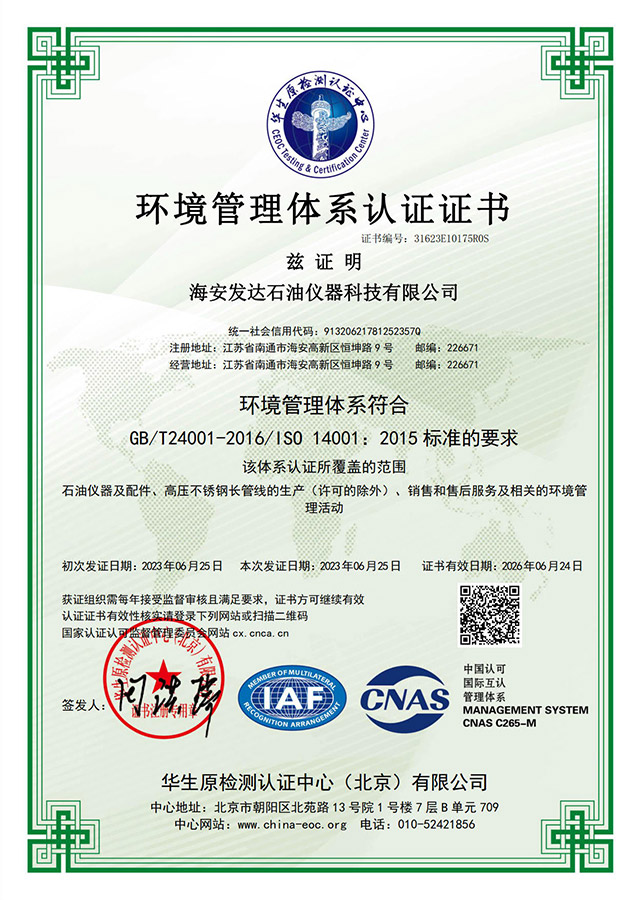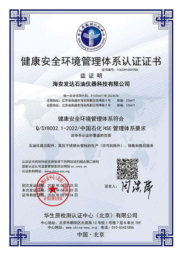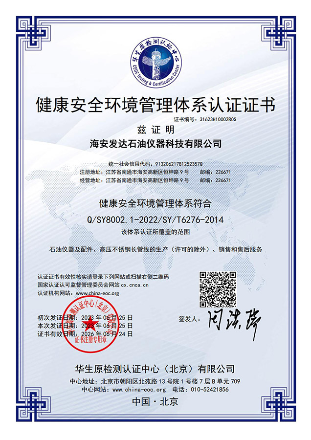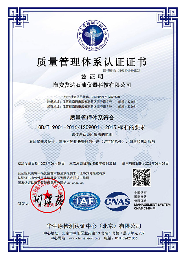 海安發達石油儀器科技有限公司,位于長江北岸,黃海之濱,G15沿海高速和S28啟揚高速的交匯處江海明珠一南通市海安市。生產石油、化工、地質、冶金、制藥、食品等生產部門使用的儀器設備、配件、高溫特長液控管線、高溫測試電纜。